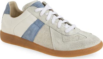 Based on a '70s German army trainer, this suede-paneled sneaker features signature numerical debossing at the tongue and a single basting stitch at the back.