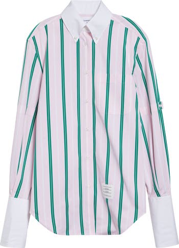 Repp Stripe Oversize Button Armband Cotton Poplin Button-Down Shirt