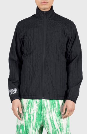 Streetwise style gets a cozy upgrade in this track jacket featuring meticulous pleating, elastic trim and a soft brushed interior for all-day ease.