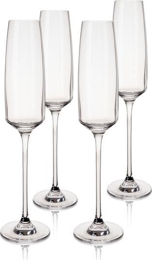 This set of angled flute glasses combines Europe’s legendary crystal glass craftsmanship with striking design. The result is an elegant sparkling wine glass set made with premium materials for perfect performance.