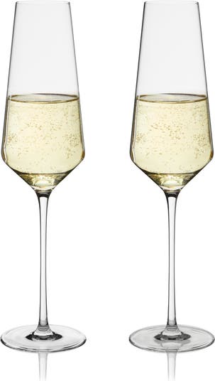 The finest possible line between you and the wine: vessels so perfectly crafted that they fade into the background, letting the flavors and aromatics take center stage. Noticeably thinner and lighter than traditional glassware, these crystal champagne flutes have a narrow silhouette that prolongs effervescence and tall stems to help maintain the ideal temperature of your sparkling wine.