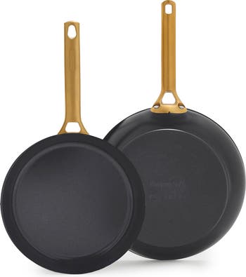 What it does: Both pans feature a nonstick Thermolon™ Minerals ceramic coating that resists damage and won't ever release harmful fumes or chemicals—even if you accidentally overheat or use metal utensils as you cook.