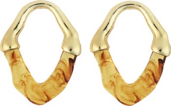 An organic shape defines eye-catching hoop earrings featuring earthy resin bottoms paired with molten 14-karat gold-plated tops.