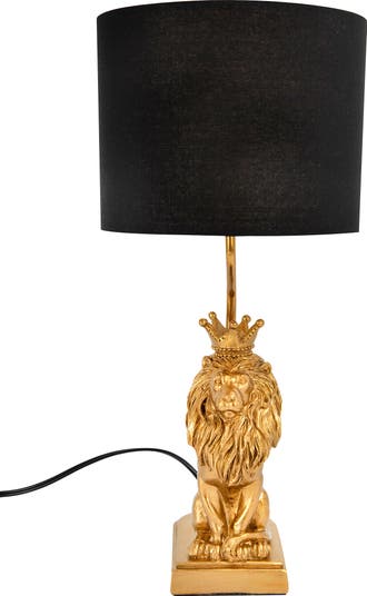 - This statement making table lamp showcases a resin silhouette of a lion in a gold finish topped with a black linen shade