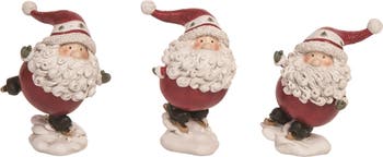 Bring holiday cheer to your home with the Transpac Resin Skiing Santa Figurine Set of 3 This delightful set features three charming Santa figurines each dressed in colorful ski gear ready to hit the slopes These decorative objects are perfect for adding a festive touch to your Christmas decorations Each figurine measures 4.5 inches in height 4 inches in length and 2.75 inches in width making them ideal for tabletop displays Crafted from durable resin these figurines are designed for indoor use and can be easily cleaned with a simple spot or wipe The multicolor design adds a vibrant pop to your holiday decor making this set a wonderful addition to your seasonal collection