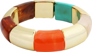 Chunky beads of resin and 14-karat-gold plating create a bold, playful bracelet.