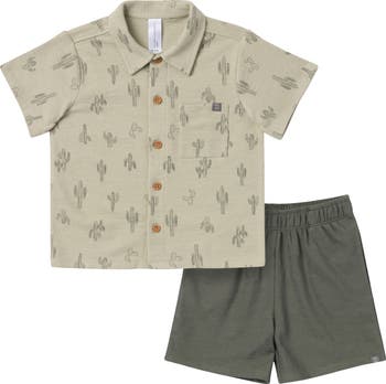 This collared shirt and shorts set is the perfect blend of fashion and function for sunny day fun! Made from 100% cotton to keep sensitive skin comfortable, the shirt features adorable faux wood buttons down the front for a stylish look. The shorts have a comfort-stretch waistband, making them easy to wear and perfect for playtime. Our essentials have been independently certified with STANDARD 100 by OEKO-TEX® so that you don’t have to worry about harmful substances in your baby’s wardrobe. Pack includes one collared shirt and matching shorts.