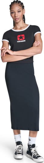 This throwback tee brings 90s vibes with its contrast trim, vintage Converse logo, and slim fit. The soft, cotton-blend fabric has stretch for comfort, so you can kick back or throw it on and go.