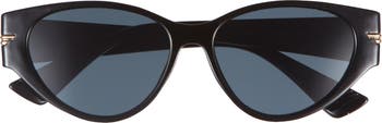 Angular cat-eye frames boast a retro profile on stylish plastic sunglasses accented with decorative metal hardware at the hinges.