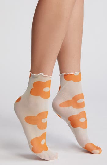 Embrace the airy comfort of soft, lightweight mesh socks fashioned with a retro floral print.