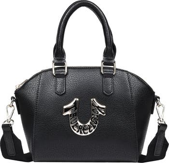 Make a bold style statement with the True Religion Retro Horseshoe Mini Satchel. Featuring the brand’s iconic oversized horseshoe logo in a polished metal finish, this compact bag blends vintage-inspired design with modern functionality. The structured silhouette, dual top handles, and detachable logo strap offer versatile carry options, while the zip-top closure keeps your essentials secure and organized.