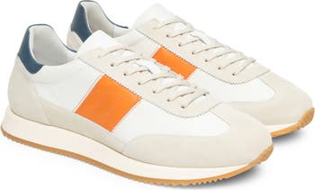Color-pop stripes enliven the retro look of this lace-up sneaker that's ready for the weekend.