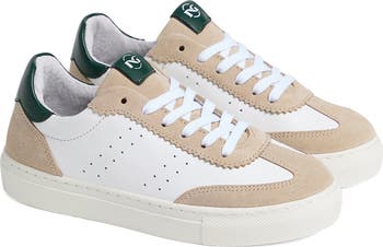 Contrast trim plays up the retro style of this lace-up sneaker that's ready for playtime.