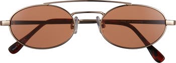 A double bridge and slim oval frames create a retro aesthetic on everyday sunglasses featuring adjustable nose pads for a customized fit.