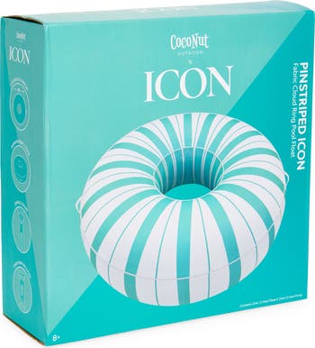 Relax while taking in some sun rays on this retro-patterned pool ring featuring a durably made vinyl insert and soft fabric cover, making it a playful addition to your summery adventures.