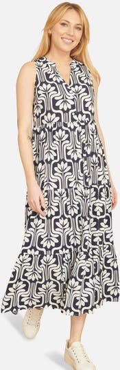 This swishy and flowy midi dress is perfect for the summer. With an all over retro print that is unique and chic. The notch neckline and relaxed fit gives this style it's holiday vibe.