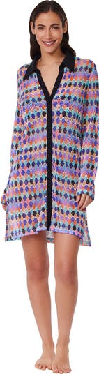 Sail into serene shore style with the Retro Riviera Netted Crochet Buttoned Tunic Cover-Up. Featuring a classic collar, front button closure, and side slits for effortless movement, this textured netted crochet piece pairs perfectly with the matching Retro Riviera Netted Crochet Beach Pant Cover-Up or your favorite Retro Riviera swim styles for a chic beach-to-boardwalk look.