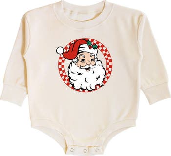 The Retro Santa Christmas Long Sleeve Romper is a fun and festive romper for babies celebrating Christmas!