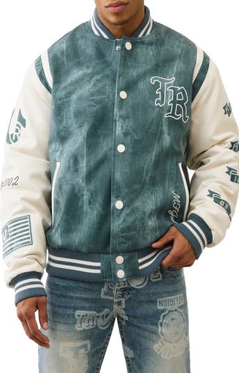 A mixed-media jacket constructed from nonstretch denim and soft faux leather adds varsity-level flex to your after-school outfits.