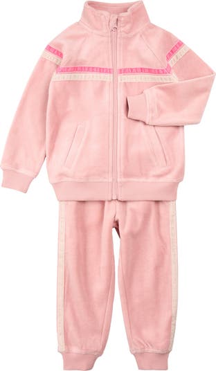 Enrich baby's style with this retro-inspired velour track suit that's supersoft and effortlessly cool.