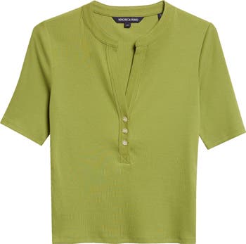 This slim-fit henley is cut from premium stretch pima cotton for exceptional softness and strength. Allover ribbing, a deep V-neck and three-button placket sharpen the short-sleeve silhouette with body-skimming appeal.