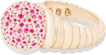 A playful take on the cocktail ring, the Revel Bobble Cocktail Ring features a large sphere completely covered in pave set diamonds. The sphere rests in a bold band covered in our signature ribbing detail, adding a sculptural and dimensional element to this whimsical design.