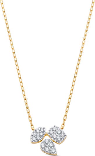 A collection of shapes gives an organic-inspired feel to the pavé diamond pendant of this 18-karat-gold necklace.