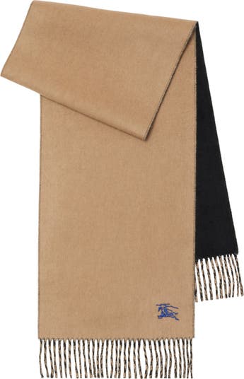 A reversible scarf in cashmere, embroidered with our Equestrian Knight Design. Woven in Scotland at a mill founded in 1797, the fabric is washed in local spring water and brushed for an ultra-soft finish.||Rectangular|Fringing at both ends