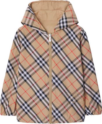 A hooded jacket in a cotton blend, reversing from Burberry Check to a solid colour. The style is embroidered with our Equestrian Knight Design on both sides. Part of Burberry Classics, wardrobe foundations with a unique Burberry slant. ||Zip closure|Elasticated hem and cuffs