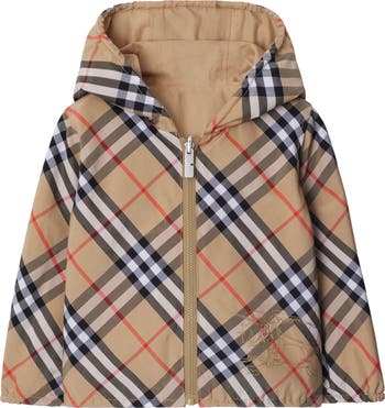 A hooded jacket in a cotton blend, reversing from Burberry Check to a solid colour. The lightweight style is embroidered with our Equestrian Knight Design on both sides. Part of Burberry Classics, wardrobe foundations with a unique Burberry slant. ||Zip closure|Side press-stud slip pockets|Elasticated hem and cuffs