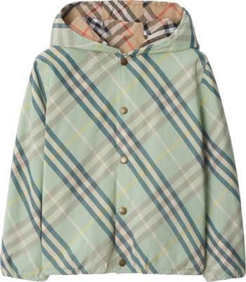 A reversible hooded jacket in an Italian-woven cotton blend, patterned with contrasting shades of the Burberry Check. ||Press-stud closure|Elasticated hood, hem and cuffs