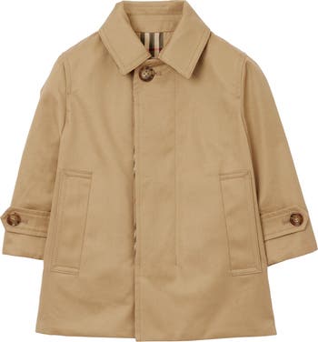 A car coat in shower-resistant cotton gabardine. The reversible design switches from Burberry Check to a solid colour.||Single-breasted button closure|Side welt pockets; reverse side welt pockets|Button-tab cuffs|Back vent|Burberry Check undercollar