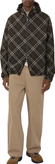 A lightweight jacket in twill, cut to an oversized fit with a drawcord hood. The reversible design switches from the Burberry Check to a solid colour truffle brown nylon and is appliquéd with our Equestrian Knight Design.||Two-way zip closure|Drawcord hood and hem|Side zip pockets; reverse press-stud welt pockets|Elasticated cuffs|Appliquéd Equestrian Knight Design at both sides|Comes with a garment bag
