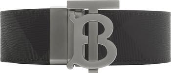 An Italian-made belt with a dark graphite Thomas Burberry Monogram plaque buckle. The reversible design switches from Burberry Check to smooth leather.||Hand-painted edges|Comes with a dust bag