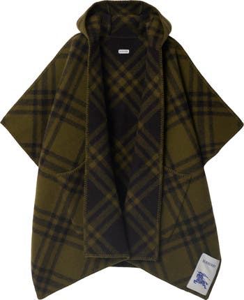 A hooded cape in Norwegian-woven wool with a seasonal check. The reversible style is appliquéd with our Equestrian Knight Design label.||Side patch pockets|Blanket stitching at edges|Equestrian Knight Design label at hem