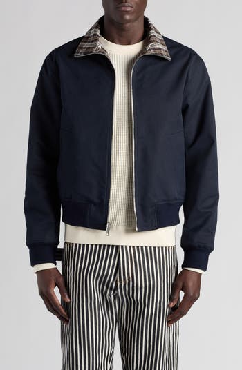 Compact-cotton construction helps block the wind and chill in this reversible jacket to double your style options for season-transitioning outerwear.