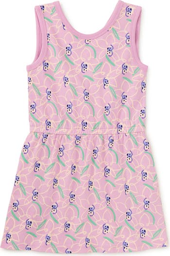 New style! Twice the fun, twice the style! Our front-to-back reversible dress is made for springtime adventures. Featuring a charming, original floral print inspired by the beauty of the season, this sleeveless dress offers effortless versatility. Designed for all-day comfort with a soft 100% cotton jersey fabric and a gentle elastic waist for the perfect fit. Play, twirl, repeat! Mid-thigh length.