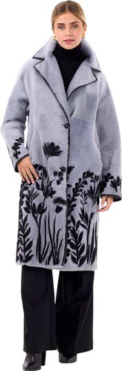 Wrap yourself in refined luxury with this reversible Genuine Shearling short coat, detailed with delicate floral embroidery. Soft, stylish, and effortlessly elegant.