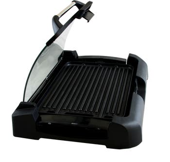The Megachef Reversible Indoor Grill and Griddle with Removable Glass Lid is designed with a non-stick coating so that you can easily prepare delicious and appetizing meals with less oil than traditional cooking methods. MegaChef understands that no matter the weather outside, friends and family should always be welcome to enjoy juicy grilled meats and vegetables. Rain or Shine, this grill will be your ticket to those perfect grill lines everyone loves to see! The versatility of a reversible cooking surface means you can grill your meats and veggies, flip the grills cooking surface over and use it as a griddle for eggs, pancakes and much, much more!The non stick surface also means that your clean up is a breeze! Simply and easily wipe down any remaining foods with a moist dish cloth and you're done!This grill is designed to be light weight and easily portable. You can easily take this reversible grill to your next vacation or getaway! The removable, adjustable temperature control accurately sets cooking temperature to achieve desired results when cooking a variety of foods. This grill offers a 15" by 11" cooking surface on both sides of the cooking surface panel. Which means you are getting both a 15" Griddle and a 15" Grill all in one!A removable glass lid is included for your safety and convenience. You can easily attache and remove the lid as needed to accommodate any cooking style you choose. The lid also features a closing latch to ensure it is not opened accidental and is securely held in place. Once fully opened and secured in the slots where the lid is attached to the grill, it will remain in a secure upright position to avoid the the possibility of closing.* Item Dimensions: 19.50" L x x14.50" W x 3.50" H