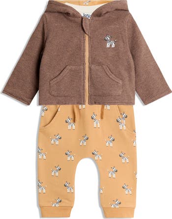 - Jacket is 100% cotton; bodysuit is 96% cotton, 4% elastane; joggers are 95% cotton, 5% elastane