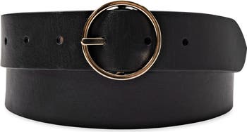 A polished round buckle fastens this smooth leather belt that reverses from black to brown to double your wearing options.