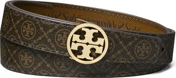 An iconic medallion logo accents the sliding prong buckle on this reversible leather belt designed in two colors to complete any look.