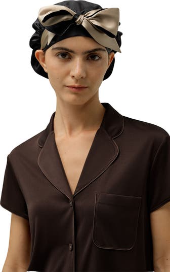 This reversible silk sleep cap is thoughtfully designed to bring together comfort, beauty, and practicality. Made from machine-washable silk charmeuse, it features two luxurious layers for double-sided wear and added durability. The two adjustable silk ribbons allow you to customize your fit and style—wear it as a bow for a touch of charm or tie it back for a snug nighttime wrap. Ideal for protecting your hair from frizz, dryness, and tangling while you sleep, it’s an elevated essential that transitions seamlessly from night to morning.