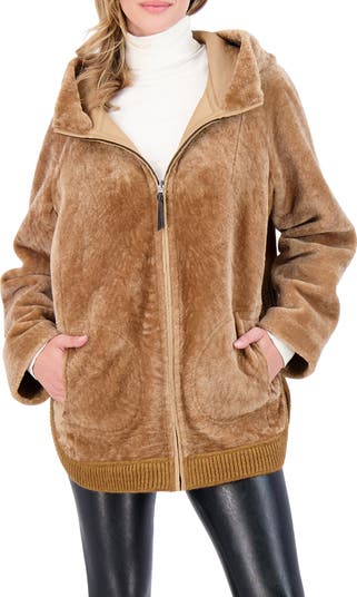 This Reversible Genuine Shearling Zip Parka offers versatile style and cozy warmth in one. Featuring a textured shearling finish on one side and a smooth, sleek look on the other, it adapts effortlessly to your mood and outfit.