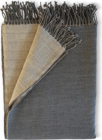 50% Linen 50% Merino Lambswool Rustic and simple weave. Quiet earthy tones. This throw has substantial weight without being bulky. One side Linen and the other side Merino Lambswool.