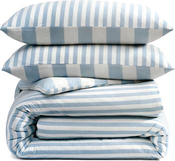 Slim stripes bring a clean, classic look, while the contrasting reverse adds a bold, fashion-driven twist to this soft cotton set that completes your space with relaxed, easy comfort.