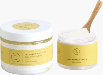 Set of two to revive your skin: Grapefruit shea butter and body scrub. Revive and rejuvenate dry and dull skin with Lizush Shea butter cream - a deeply hydrating body lotion made with premium natural ingredients and essential oils.