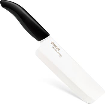 The Kyocera Revolution Ceramic 6-Inch Nakiri Knife delivers clean, precise cuts for vegetables and herbs. Made in Japan with Kyocera’s advanced zirconia ceramic, it stays sharper up to ten times longer than steel and won’t rust or corrode. Lightweight, balanced, and easy to handle, it’s perfect for fast, uniform slicing and chopping.