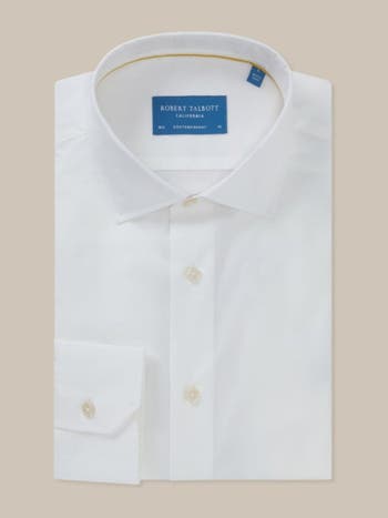 The Reynolds Dress Shirt combines thoughtful design with modern craftsmanship. Tailored to bridge the gap between business and casual, it features an edge-stitched Monterey collar with removable stays, a French placket, and a rotated armhole for style and functionality. With single-needle tailoring, mitered cuffs, and easy-care, Oeko-Tex certified fabrics, it’s built for durability and all-day polish. Signature Talbott gold piping and composite buttons make it a wardrobe foundation. Choose from contemporary or classic fits.