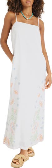 Go from the market to lunch with friends or a sunny event in this billowy organic-cotton sundress designed with charming flowers embroidered at the sides.